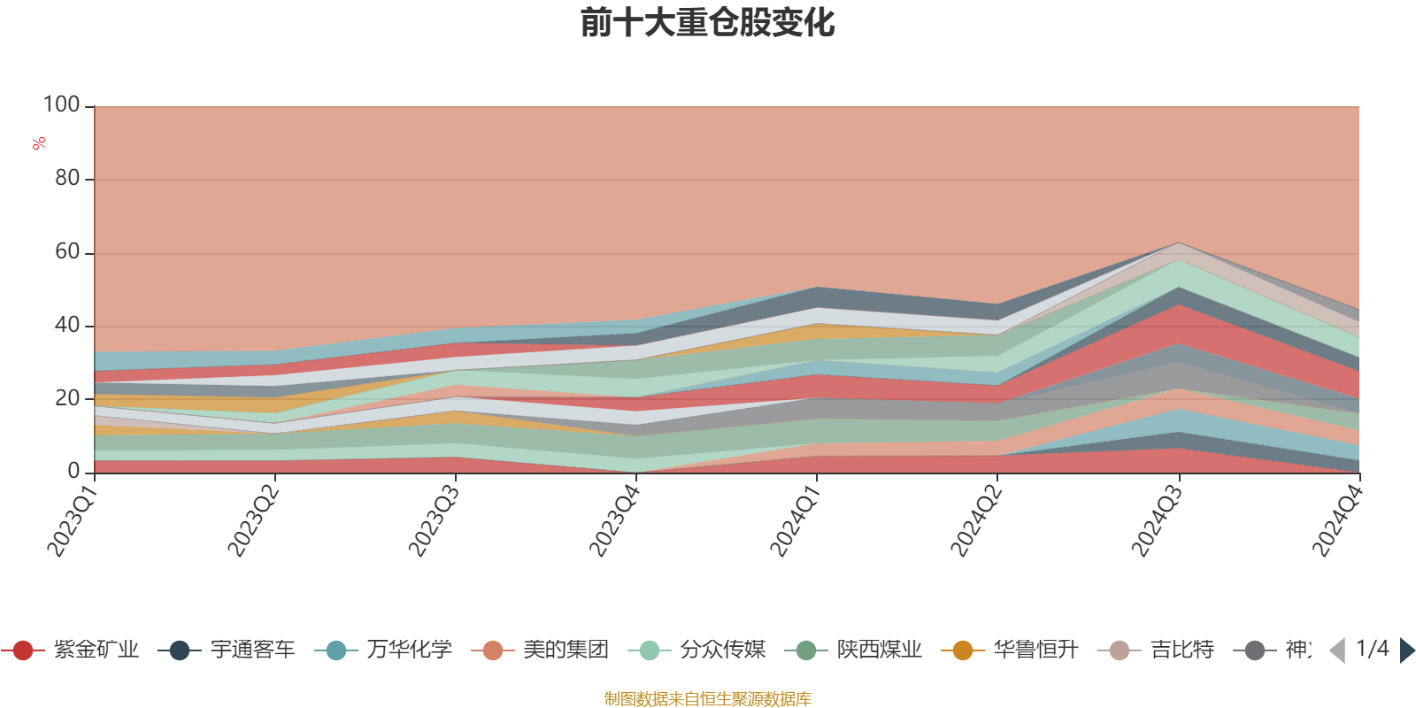 截至2024年末,基金十大重仓股分别是贵州茅台、中国海油、陕西煤业、药明康德、美的集团、万华化学、宁德时代、立讯精密、双汇发展、宇通客车。