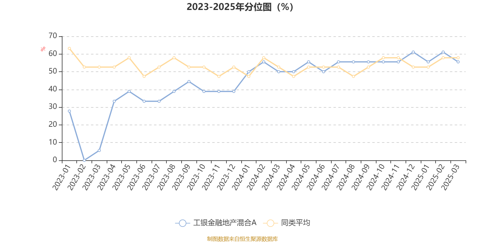 通过所选区间该基金净值增长率分位图,可以观察该基金与同类基金业绩比较情况。图为坐标原点到区间内某时点的净值增长率在同类基金中的分位数。