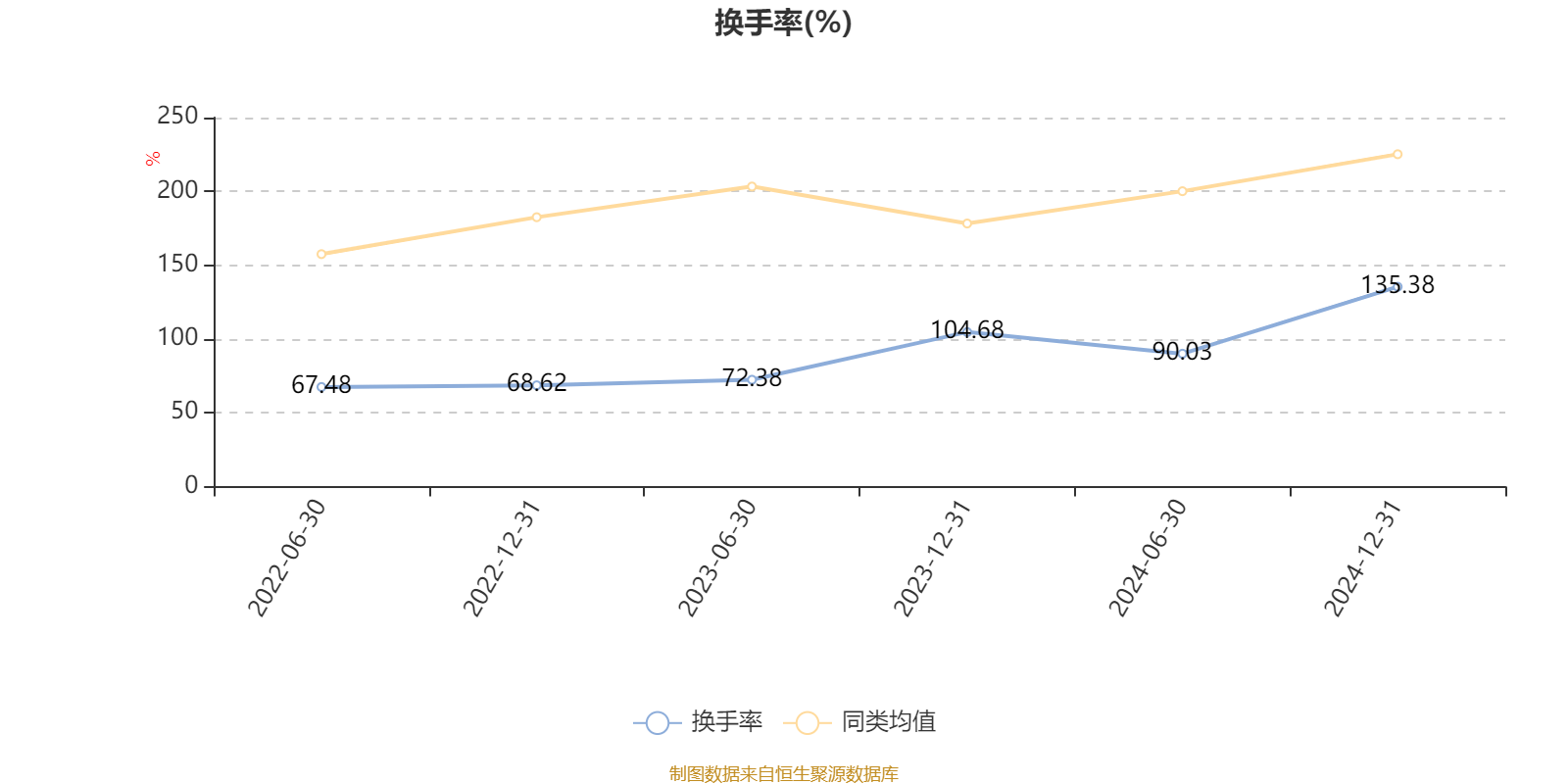 截至2024年12月31日,基金最近一年换手率约222.7%,持续低于同类均值。