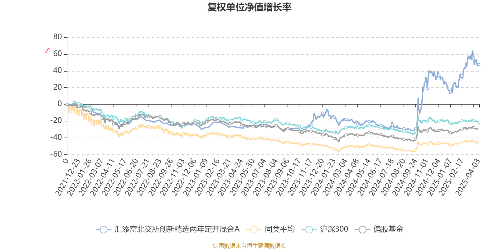 截至4月3日,汇添富北交所创新精选两年定开混合A近三个月复权单位净值增长率为28.25%,位于同类可比基金4/646;近半年复权单位净值增长率为61.31%,位于同类可比基金3/646;近一年复权单位净值增长率为85.79%,位于同类可比基金2/639;近三年复权单位净值增长率为80.65%,位于同类可比基金1/488。
