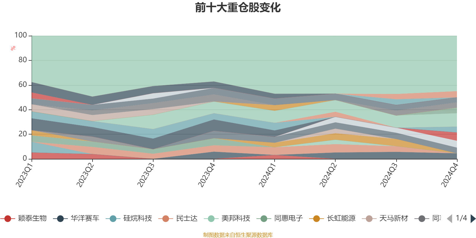 该基金持股集中度较高。截至2024年末,基金十大重仓股分别是锦波生物、曙光数创、五新隧装、苏轴股份、同力股份、康比特、万通液压、华洋赛车、易实精密、凯德石英。