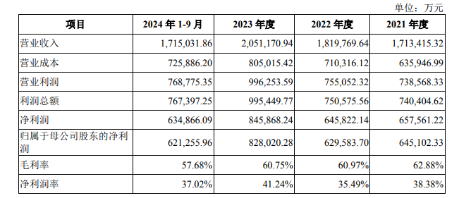业绩方面,2021年至2024年前三季度(下称“报告期”),华润新能源营业收入分别为171.34亿元、181.98亿元、205.12亿元和171.50亿元;归母净利润分别为64.51亿元、62.96亿元、82.80亿元和62.13亿元。