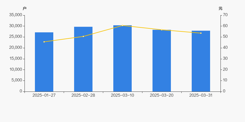 截至2025年3月31日,公司最新总股本为2.95亿股,其中流通股本为1.72亿股。户均持有流通股数量由上期的6070股上升至6161股,户均流通市值33万元。