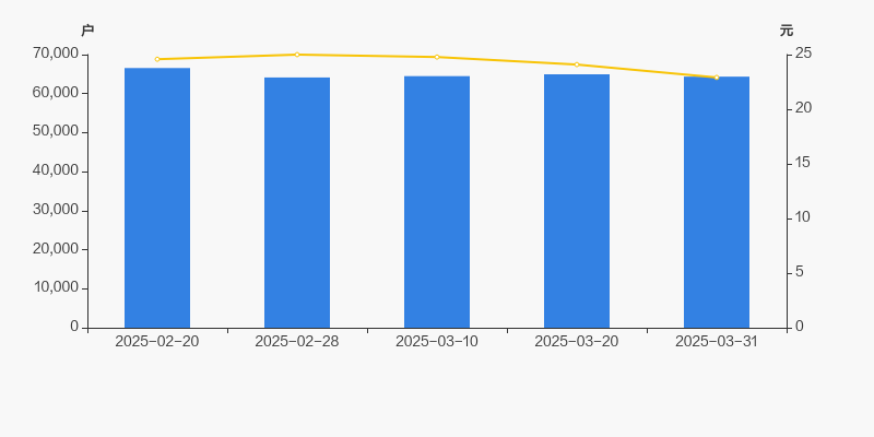 2025年2月20日至今,公司股东户数有所下降,区间跌幅为3.31%。2025年2月20日至2025年3月31日区间股价下降6.79%。