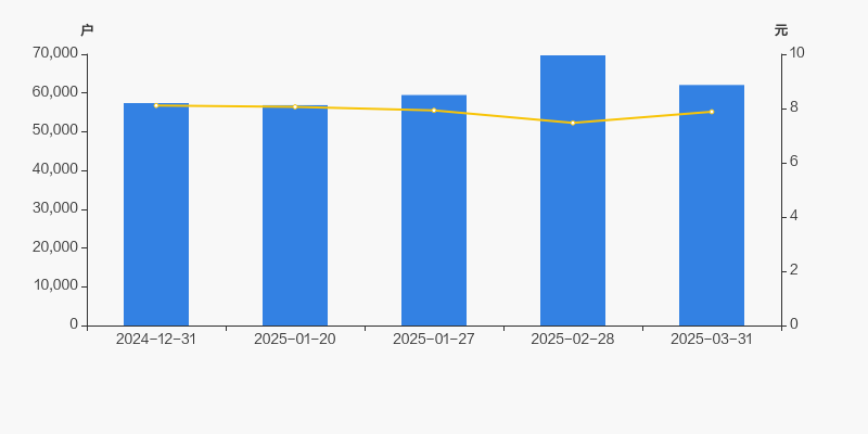 2024年12月31日至今,公司股东户数有所增长,区间涨幅为8.14%。2024年12月31日至2025年3月31日区间股价下降2.84%。