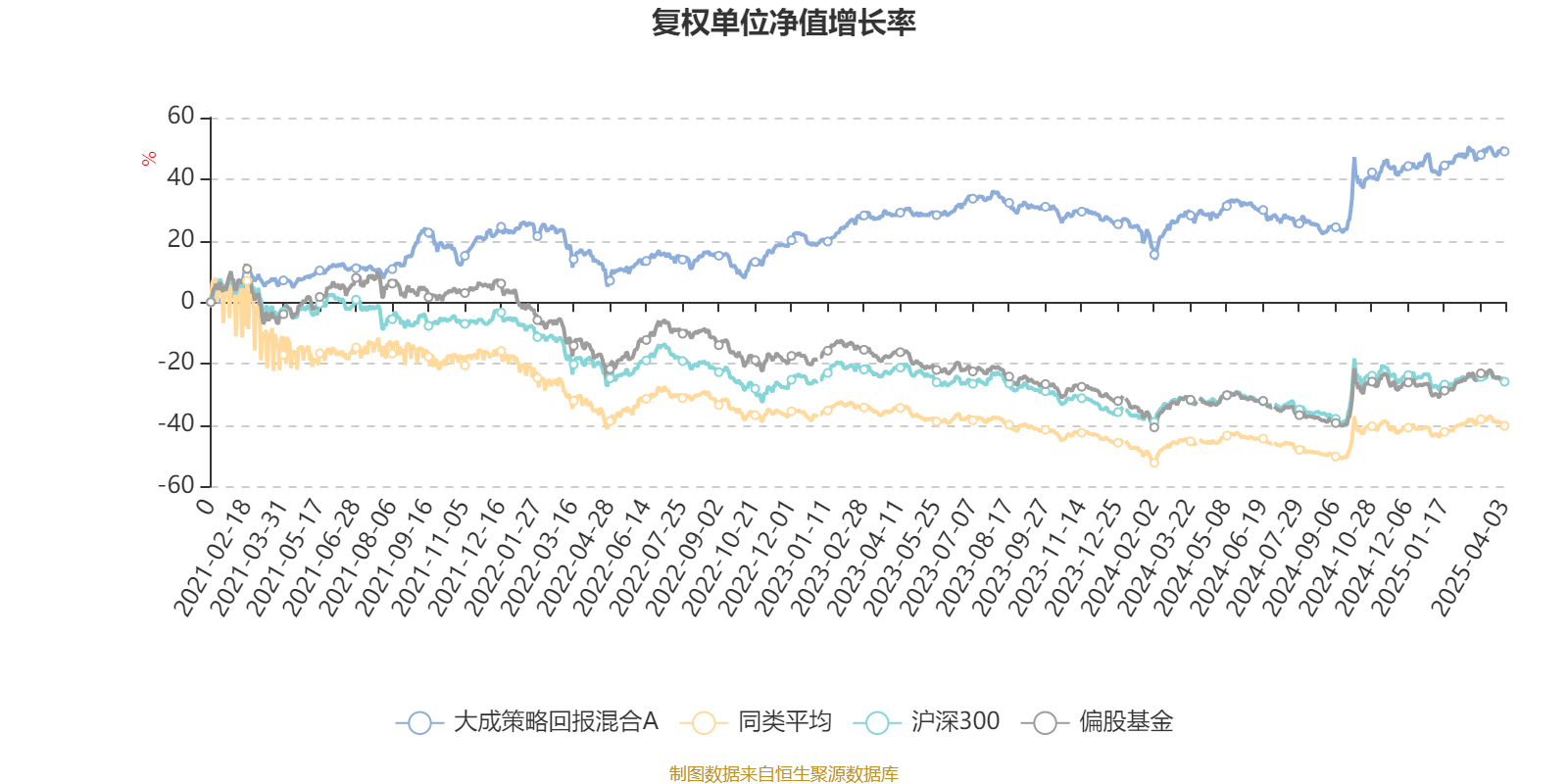 截至4月3日,大成策略回报混合A近三个月复权单位净值增长率为4.66%,位于同类可比基金79/135;近半年复权单位净值增长率为5.35%,位于同类可比基金33/135;近一年复权单位净值增长率为14.97%,位于同类可比基金38/135;近三年复权单位净值增长率为27.66%,位于同类可比基金4/130。