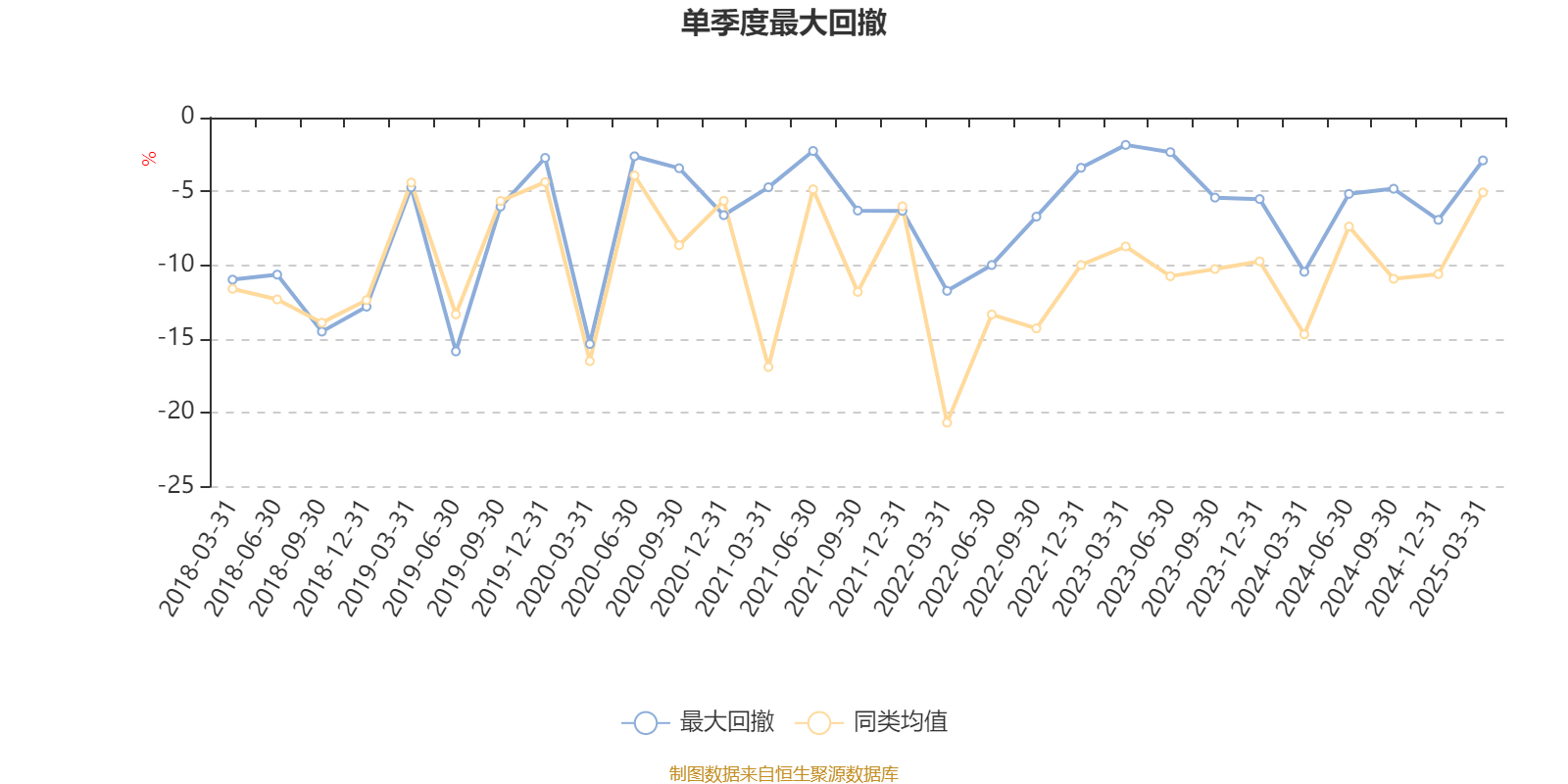 通过所选区间该基金净值增长率分位图,可以观察该基金与同类基金业绩比较情况。图为坐标原点到区间内某时点的净值增长率在同类基金中的分位数。
