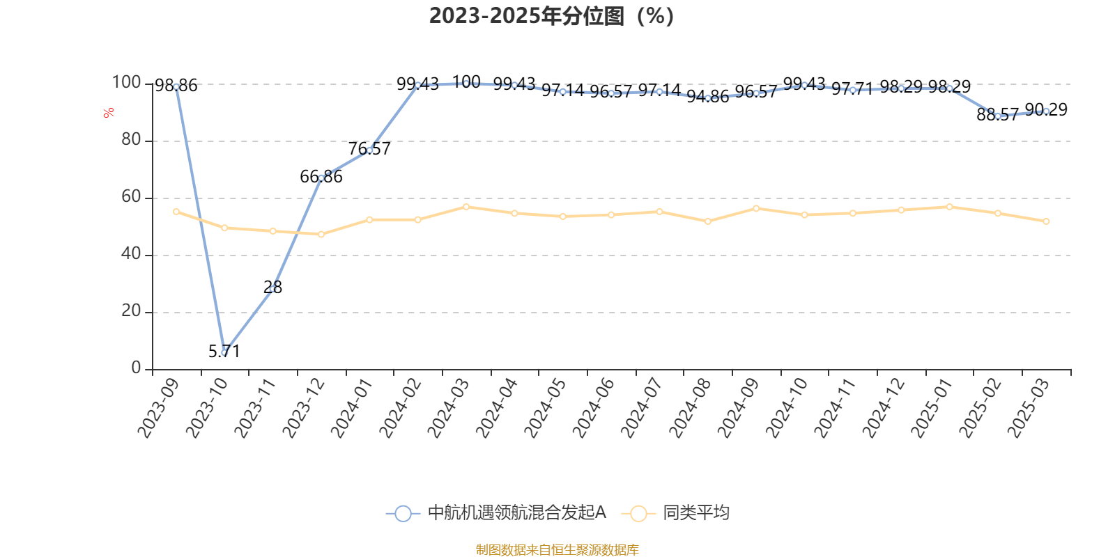 通过所选区间该基金净值增长率分位图,可以观察该基金与同类基金业绩比较情况。图为坐标原点到区间内某时点的净值增长率在同类基金中的分位数。