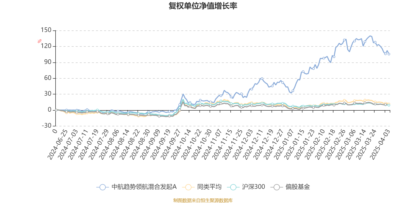 截至4月3日,中航趋势领航混合发起A近三个月复权单位净值增长率为52.88%,位于同类可比基金3/182;近半年复权单位净值增长率为70.81%,位于同类可比基金2/182。