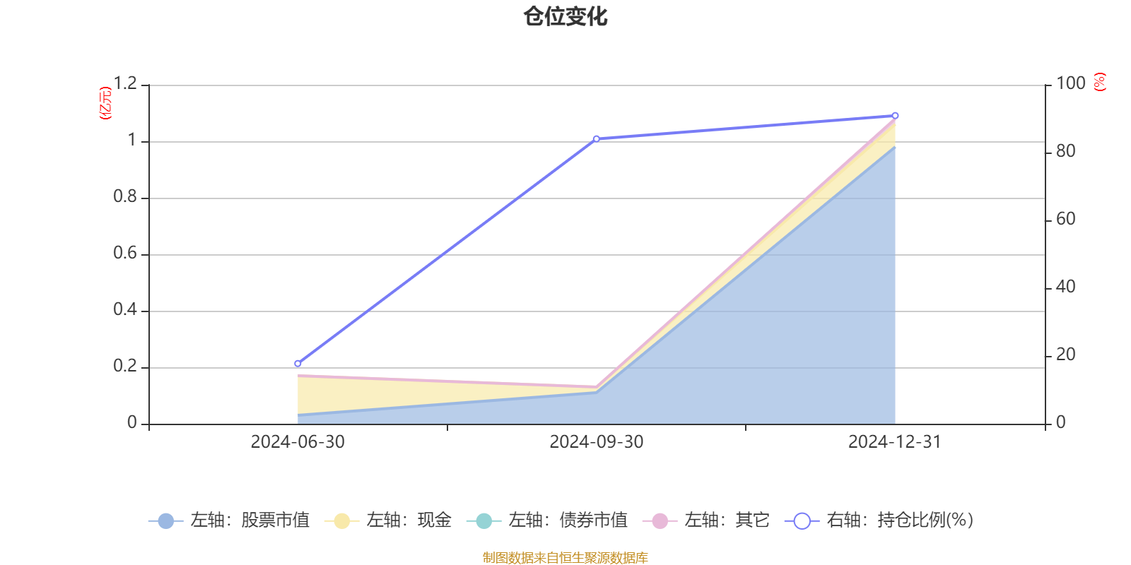 据定期报告数据统计,成立以来平均股票仓位为64.23%,同类平均为86.42%。2024年末基金达到90.9%的最高仓位,2024年上半年末最低,为17.76%。