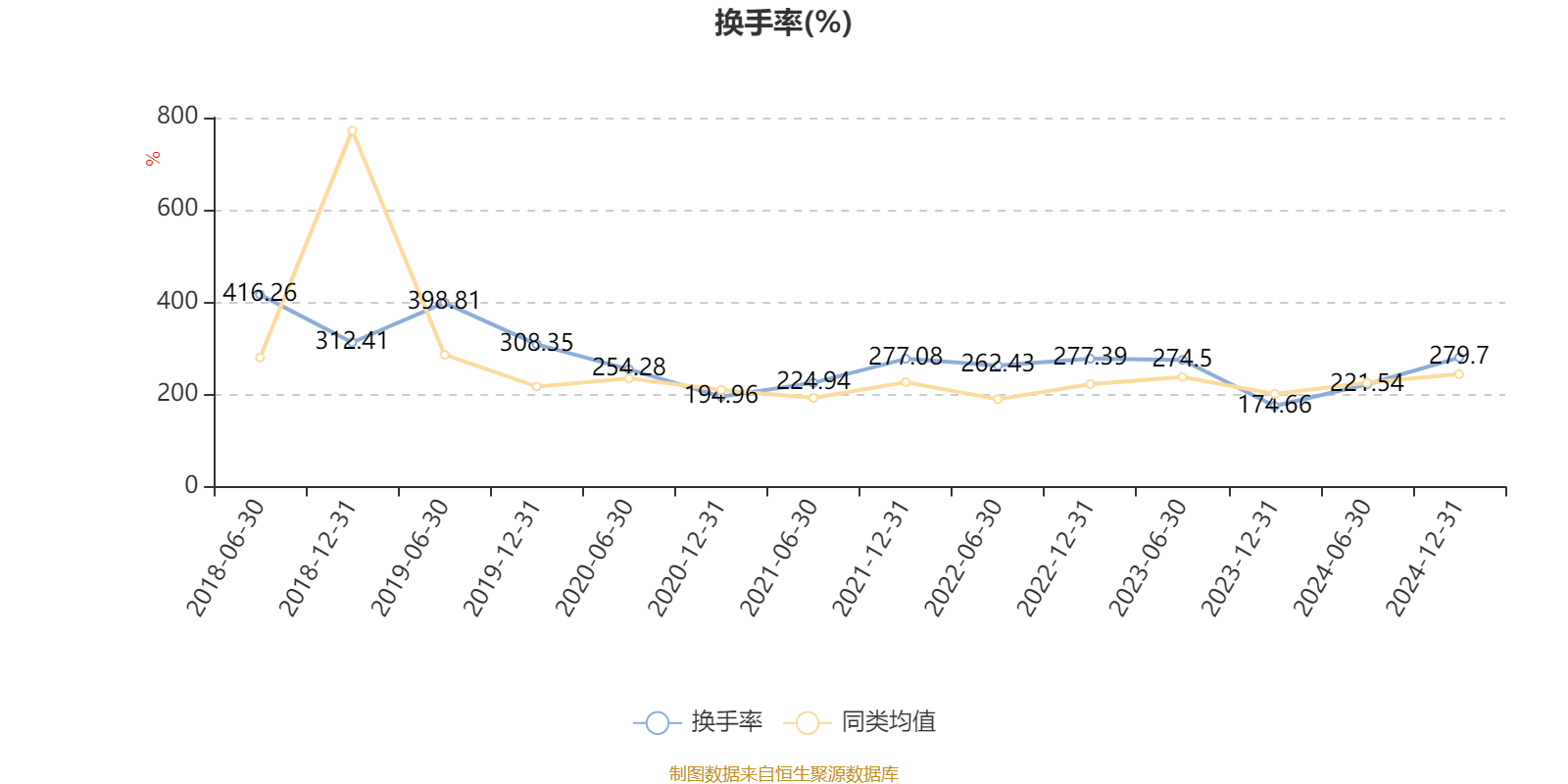 截至2024年12月31日,基金最近一年换手率约488.96%。