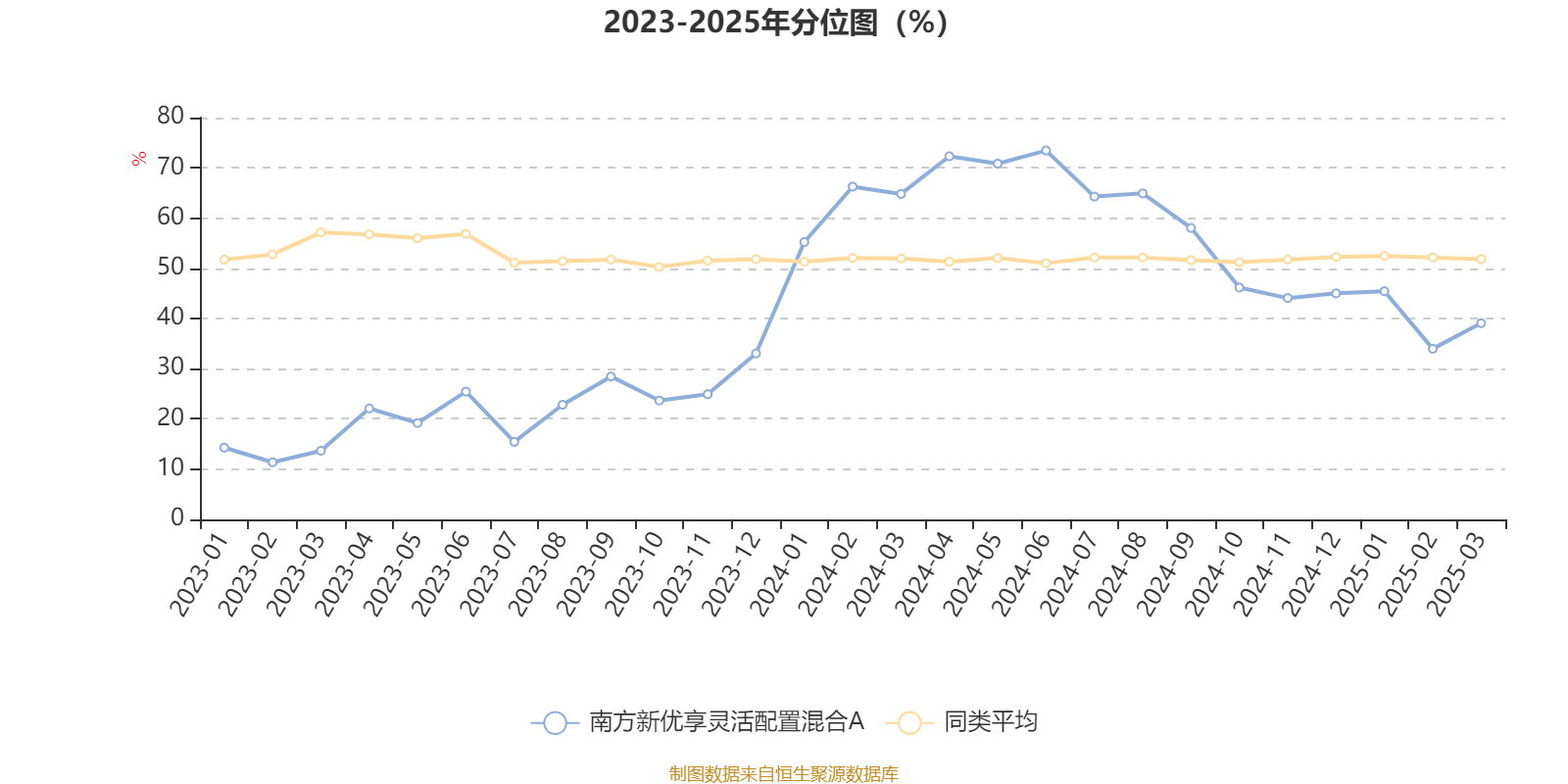 通过所选区间该基金净值增长率分位图,可以观察该基金与同类基金业绩比较情况。图为坐标原点到区间内某时点的净值增长率在同类基金中的分位数。
