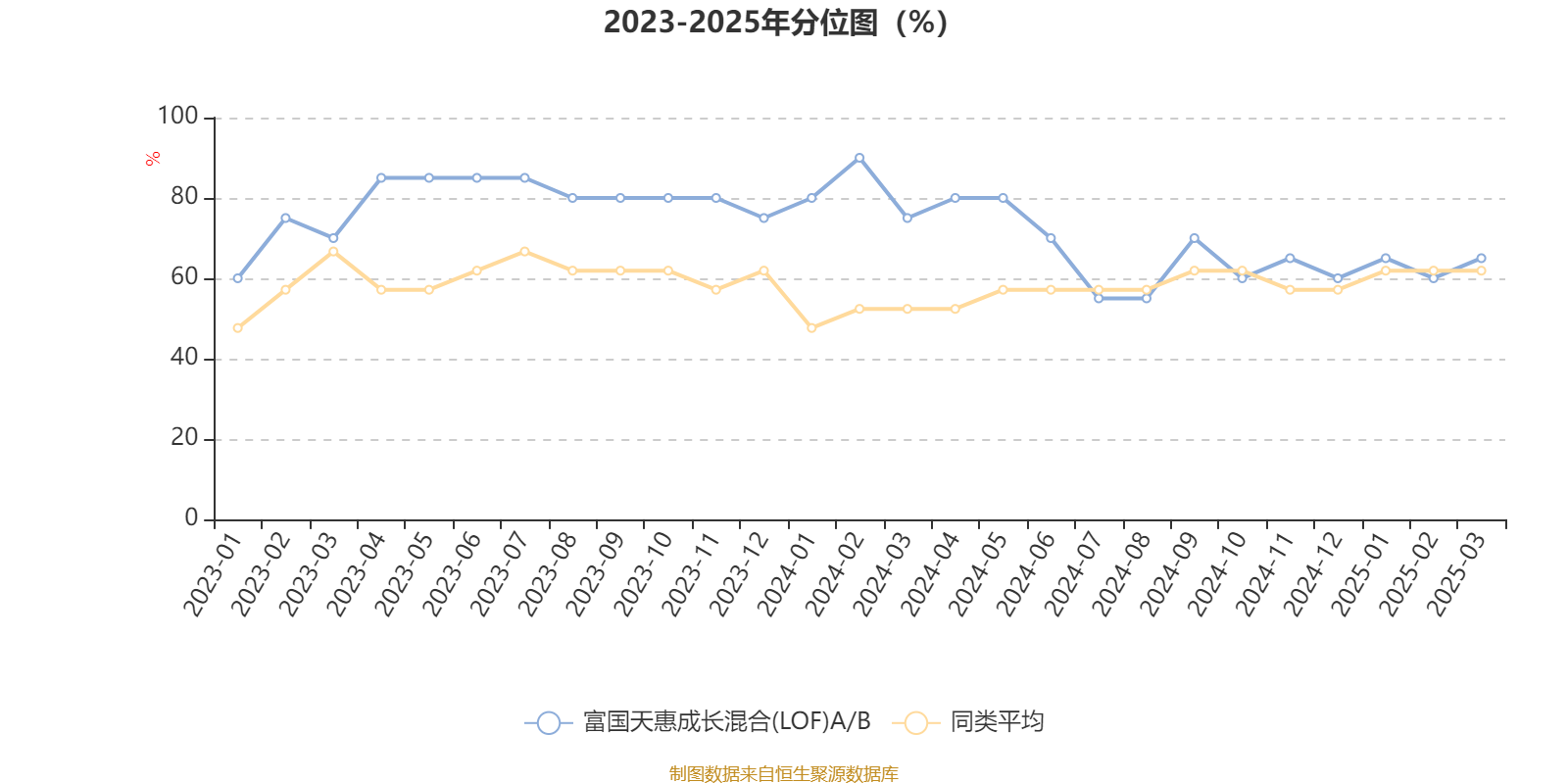 通过所选区间该基金净值增长率分位图,可以观察该基金与同类基金业绩比较情况。图为坐标原点到区间内某时点的净值增长率在同类基金中的分位数。
