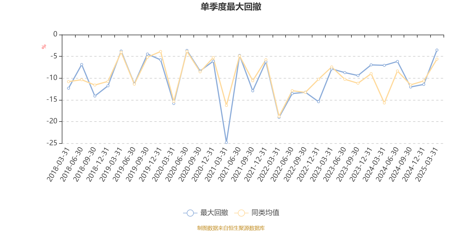 通过所选区间该基金净值增长率分位图,可以观察该基金与同类基金业绩比较情况。图为坐标原点到区间内某时点的净值增长率在同类基金中的分位数。
