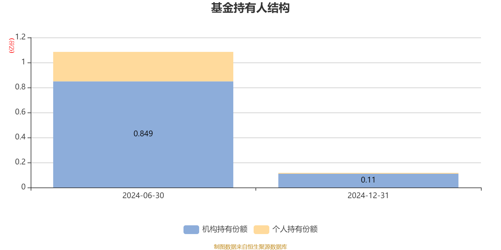 截至2024年12月31日,基金持有人共计43户,合计持有1174.62万份。其中管理人员工持有38.35万份,占比3.27%,机构持有份额占比93.69%,个人投资者占比6.31%。