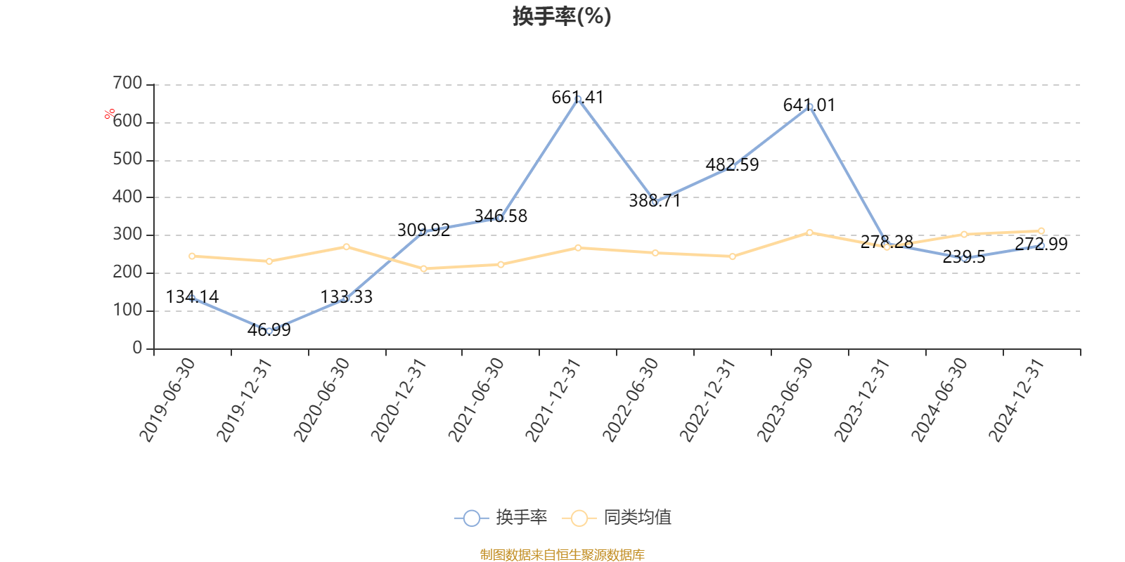 截至2024年12月31日,基金最近一年换手率约506.64%,持续1年低于同类均值。