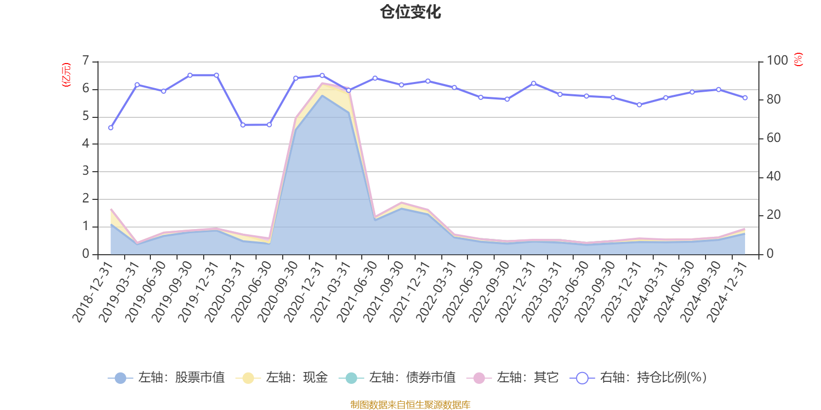 据定期报告数据统计,近三年平均股票仓位为82.76%,同类平均为88.09%。2019年末基金达到92.89%的最高仓位,2018年末最低,为65.68%。
