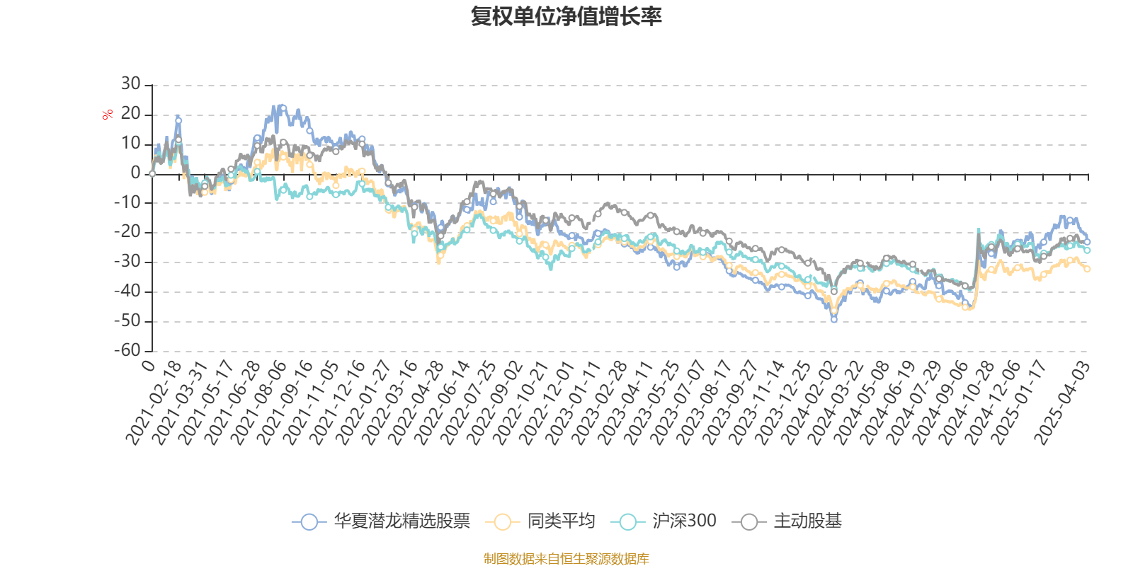 截至4月3日,华夏潜龙精选股票近三个月复权单位净值增长率为5.46%,位于同类可比基金43/100;近半年复权单位净值增长率为12.01%,位于同类可比基金17/100;近一年复权单位净值增长率为28.29%,位于同类可比基金14/99;近三年复权单位净值增长率为-14.28%,位于同类可比基金43/77。
