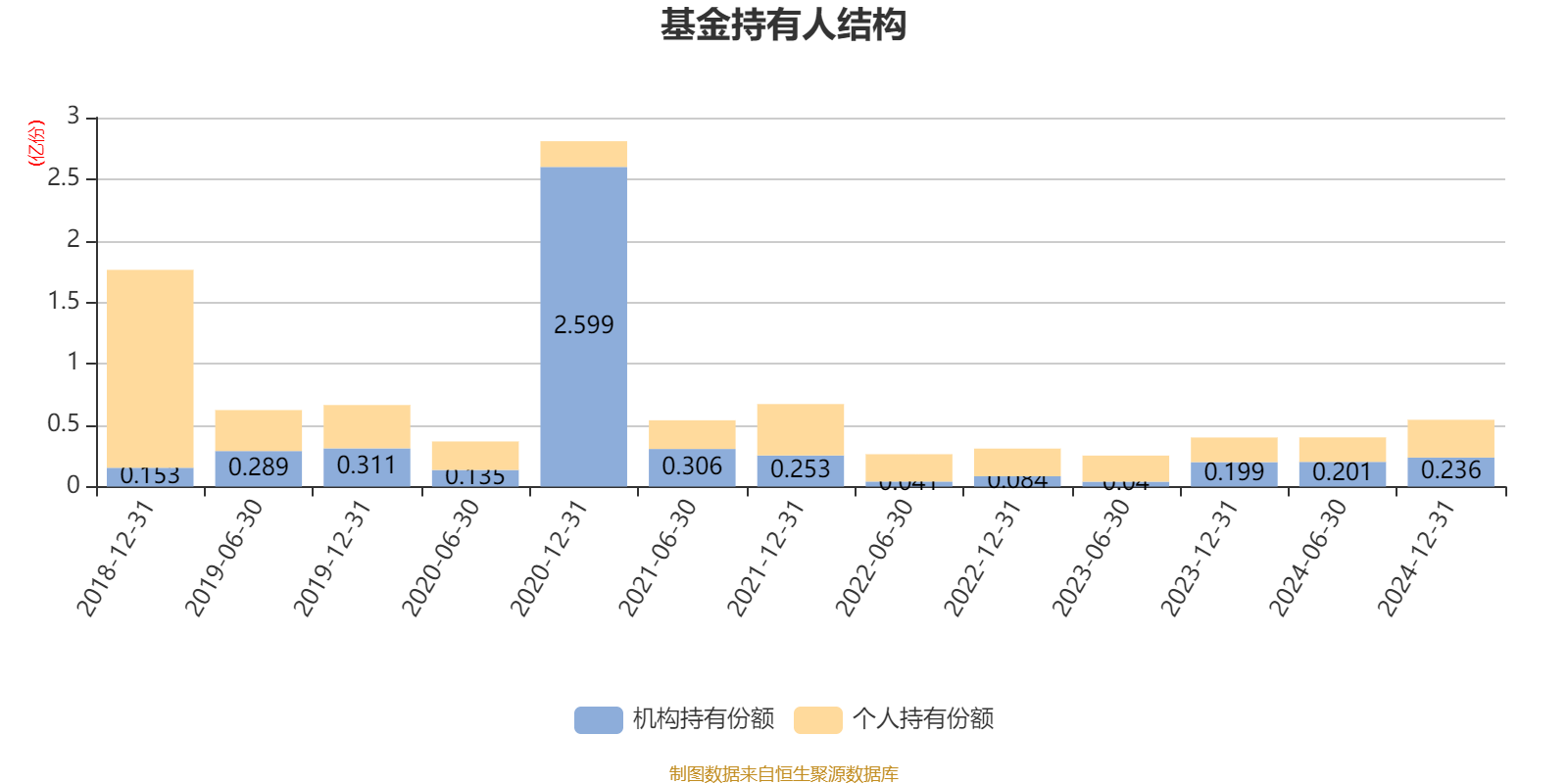 截至2024年12月31日,基金持有人共计5870户,合计持有5423.38万份。其中管理人员工持有5.88万份,占比0.11%,机构持有份额占比43.43%,个人投资者占比56.57%。
