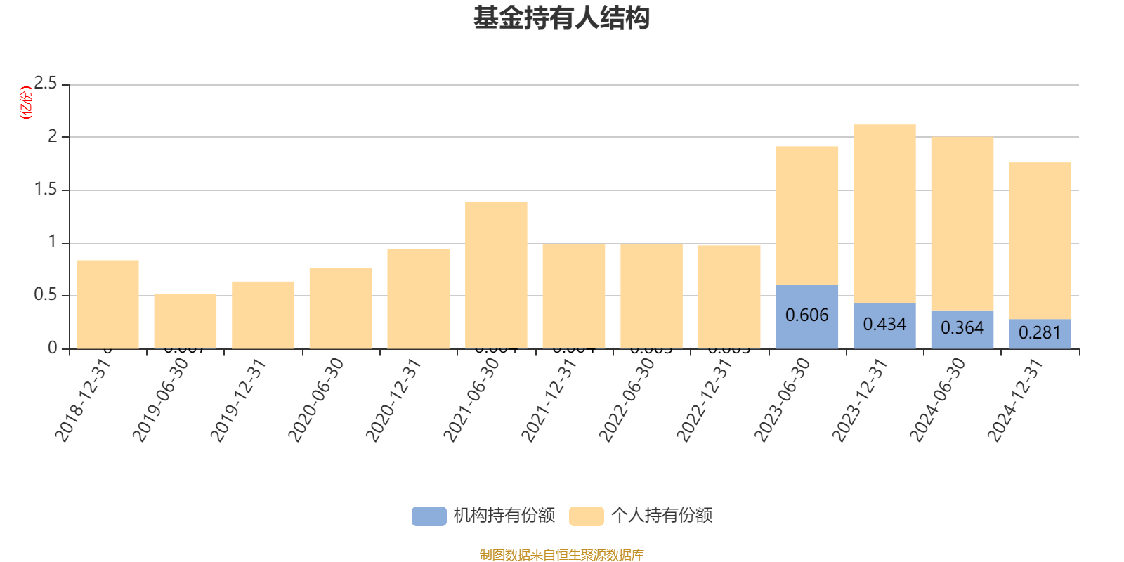 截至2024年12月31日,基金持有人共计4.8万户,合计持有1.76亿份。其中管理人员工持有40.54万份,占比0.23%,机构持有份额占比15.95%,个人投资者占比84.05%。