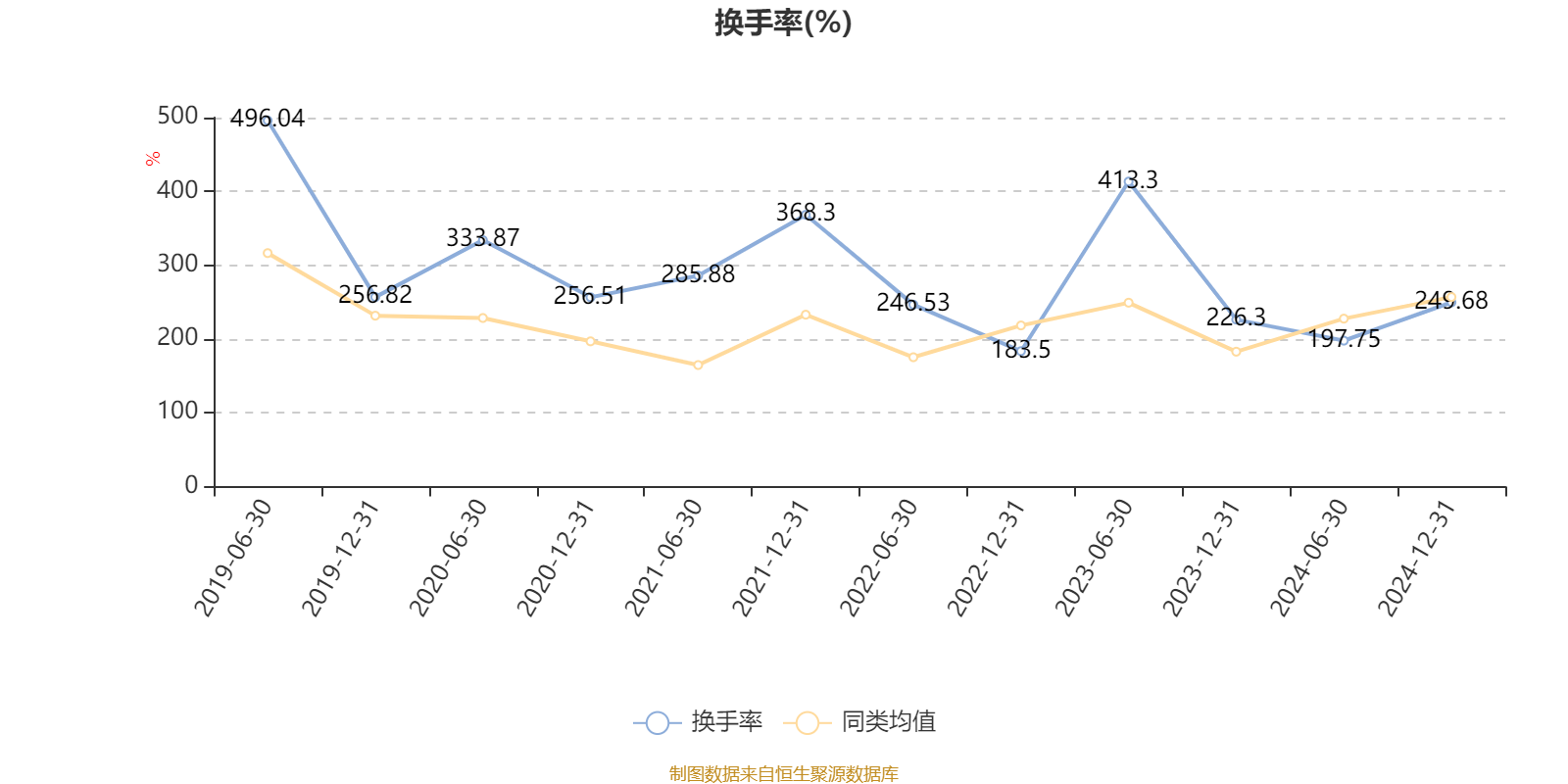 截至2024年12月31日,基金最近一年换手率约434.5%,持续1年低于同类均值。