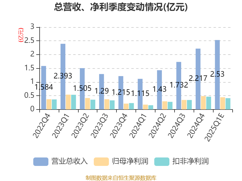 中证智能财讯同益中(688722)4月8日晚间披露业绩预告,预计2025年一季度实现营业收入2.53亿元,同比增长126.9%;归母净利润4444.1万元,同比增长153.27%;扣非净利润预计4100.31万元,同比增长168.92%。以4月8日收盘价计算,同益中目前市盈率(TTM)约为20.79倍,市净率(LF)约2.44倍,市销率(TTM)约4.13倍。