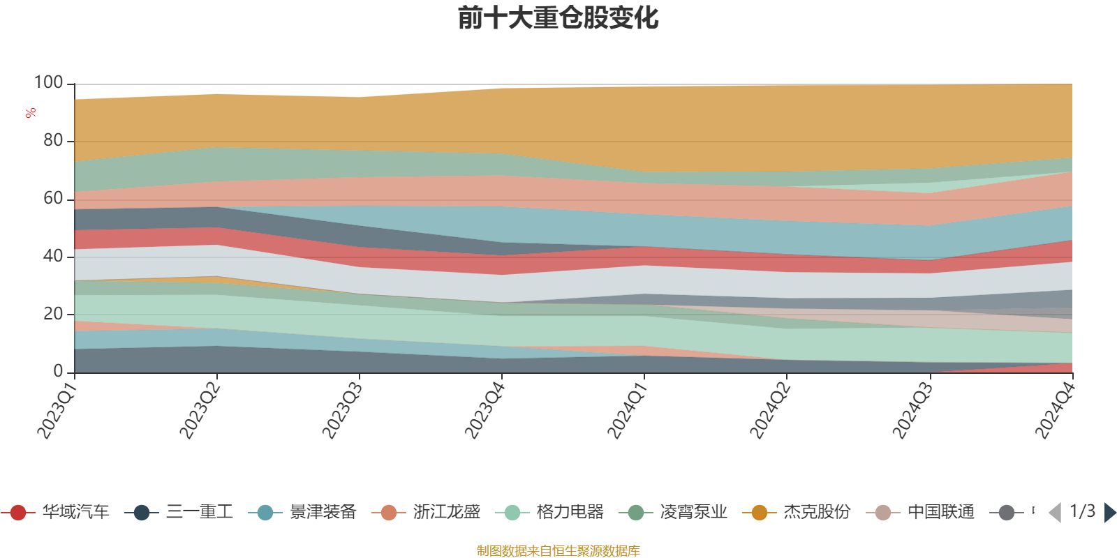 该基金持股集中度较高,且持股标的较为稳定,近2年前十大重仓股集中度长期超过60%。截至2024年末,基金十大重仓股分别是中国移动、美的集团、格力电器、豪迈科技、中国海洋石油、福耀玻璃、中兴通讯、中国联通、中国电信、华域汽车。