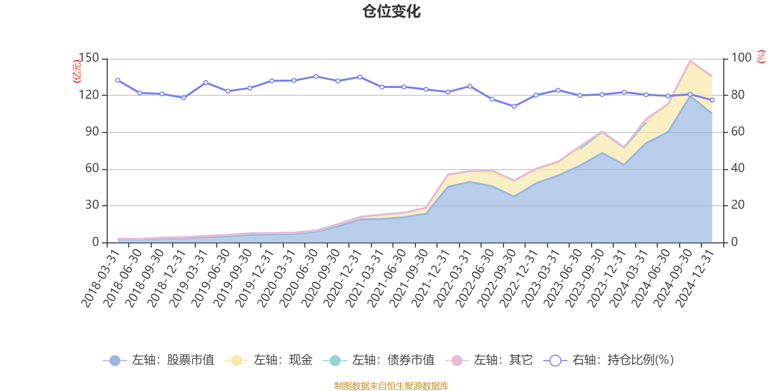 据定期报告数据统计,近三年平均股票仓位为80.06%,同类平均为88.58%。2020年上半年末基金达到90.34%的最高仓位,2022年三季度末最低,为74.1%。