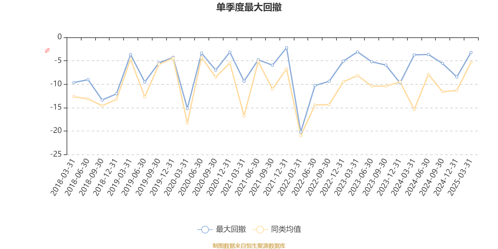 通过所选区间该基金净值增长率分位图,可以观察该基金与同类基金业绩比较情况。图为坐标原点到区间内某时点的净值增长率在同类基金中的分位数。