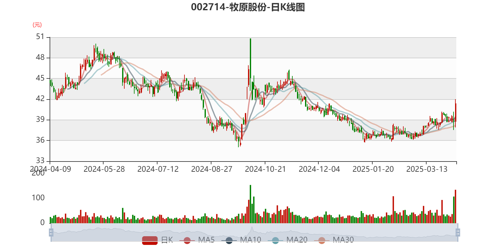 牧原股份:预计2025年一季度盈利43亿元-48亿元 同比扭亏