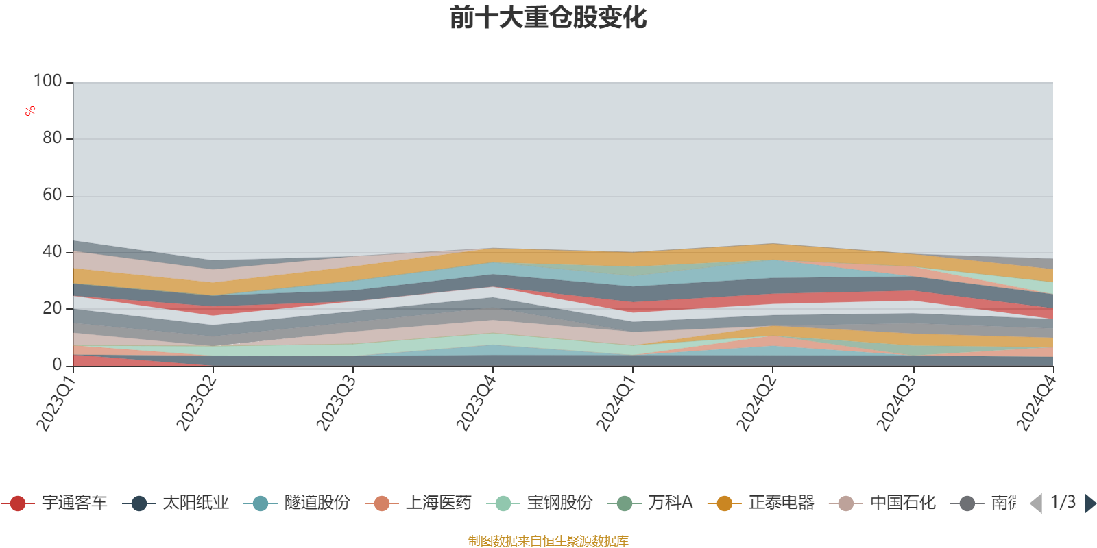 截至2024年末,基金十大重仓股分别是中国中铁、邮储银行、双汇发展、新兴铸管、中南传媒、上海医药、华新水泥、正泰电器、南微医学、太阳纸业。