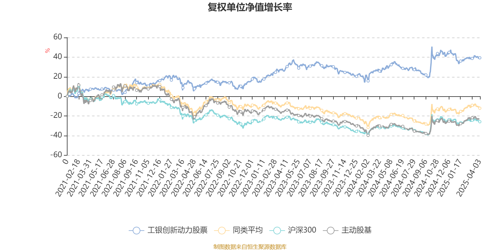 截至4月3日,工银创新动力股票近三个月复权单位净值增长率为2.15%,位于同类可比基金64/74;近半年复权单位净值增长率为-3.71%,位于同类可比基金54/74;近一年复权单位净值增长率为8.25%,位于同类可比基金42/74;近三年复权单位净值增长率为20.46%,位于同类可比基金11/73。