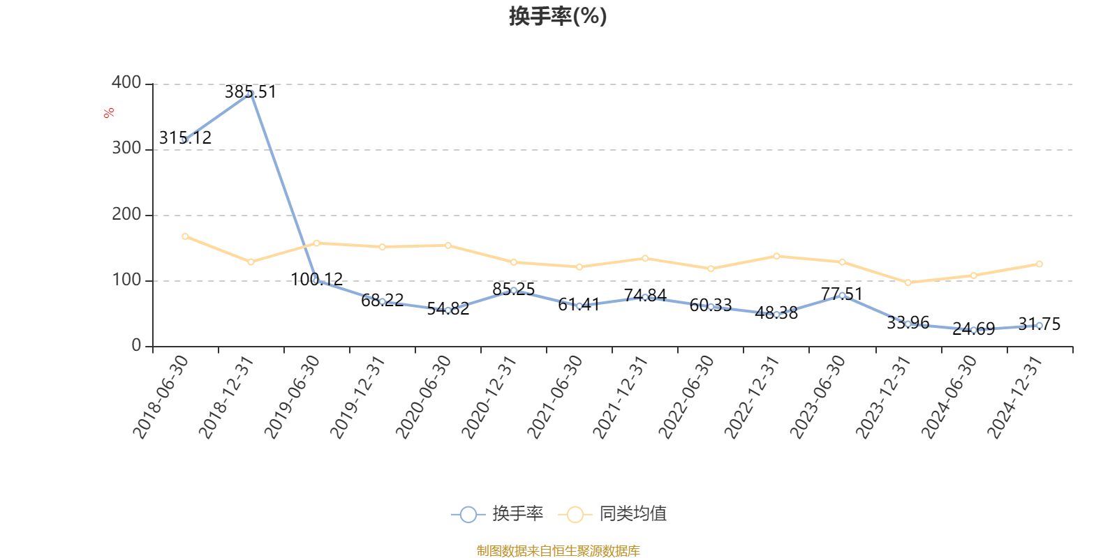 截至2024年12月31日,基金最近一年换手率约55.79%,持续6年低于同类均值。