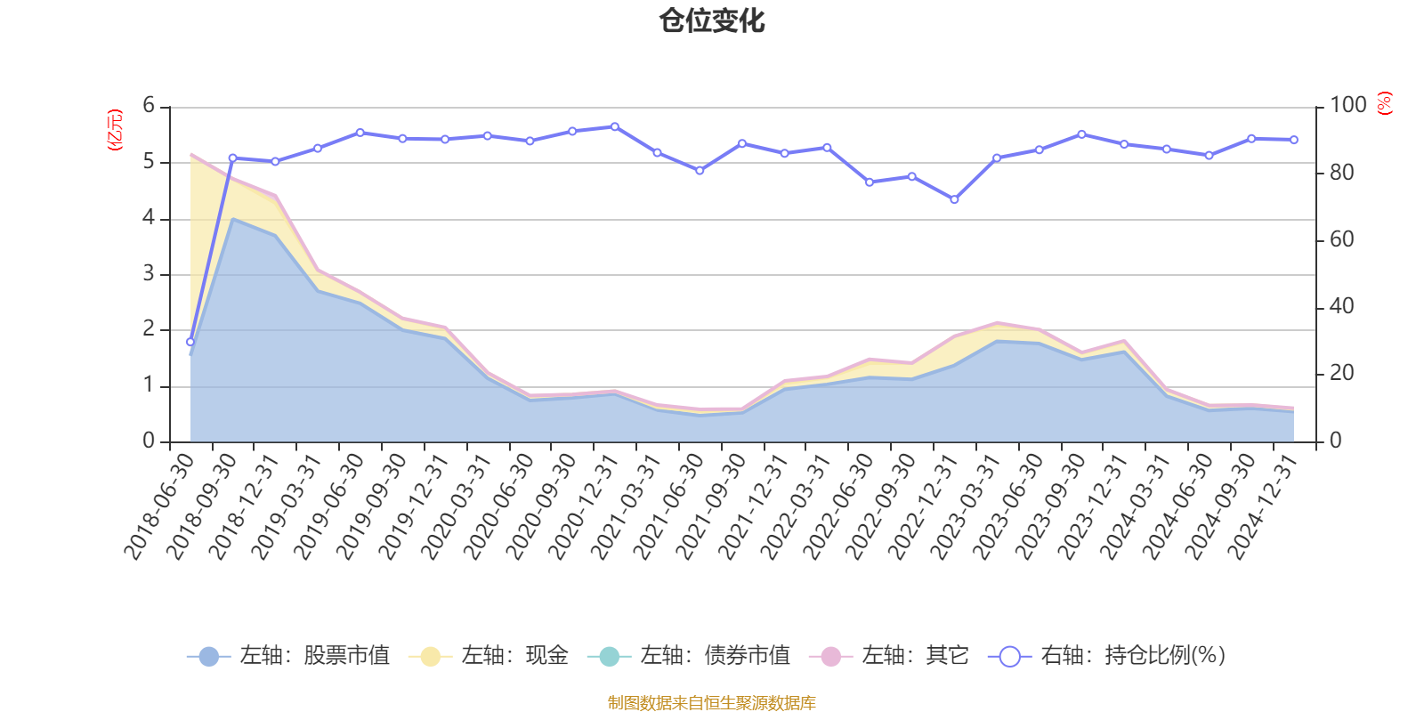 据定期报告数据统计,近三年平均股票仓位为85.24%,同类平均为88.09%。2020年末基金达到94.08%的最高仓位,2018年上半年末最低,为29.84%。