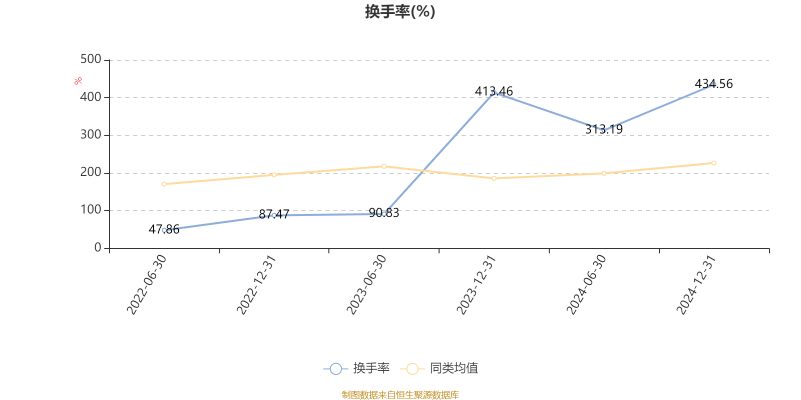 截至2024年12月31日,基金最近一年换手率约752.09%,持续1年高于同类均值。