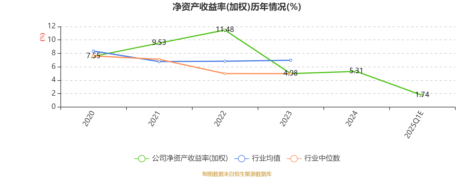 数据显示,2025年一季度公司加权平均净资产收益率为1.74%,较上年同期上升0.38个百分点。