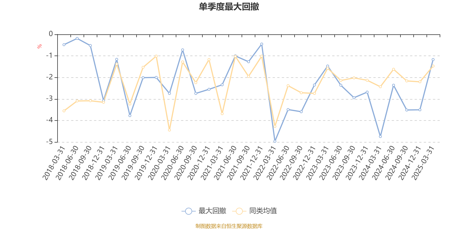 截至4月3日,基金近三年最大回撤为5.59%,同类可比基金排名78/152。单季度最大回撤出现在2022年一季度,为4.96%。