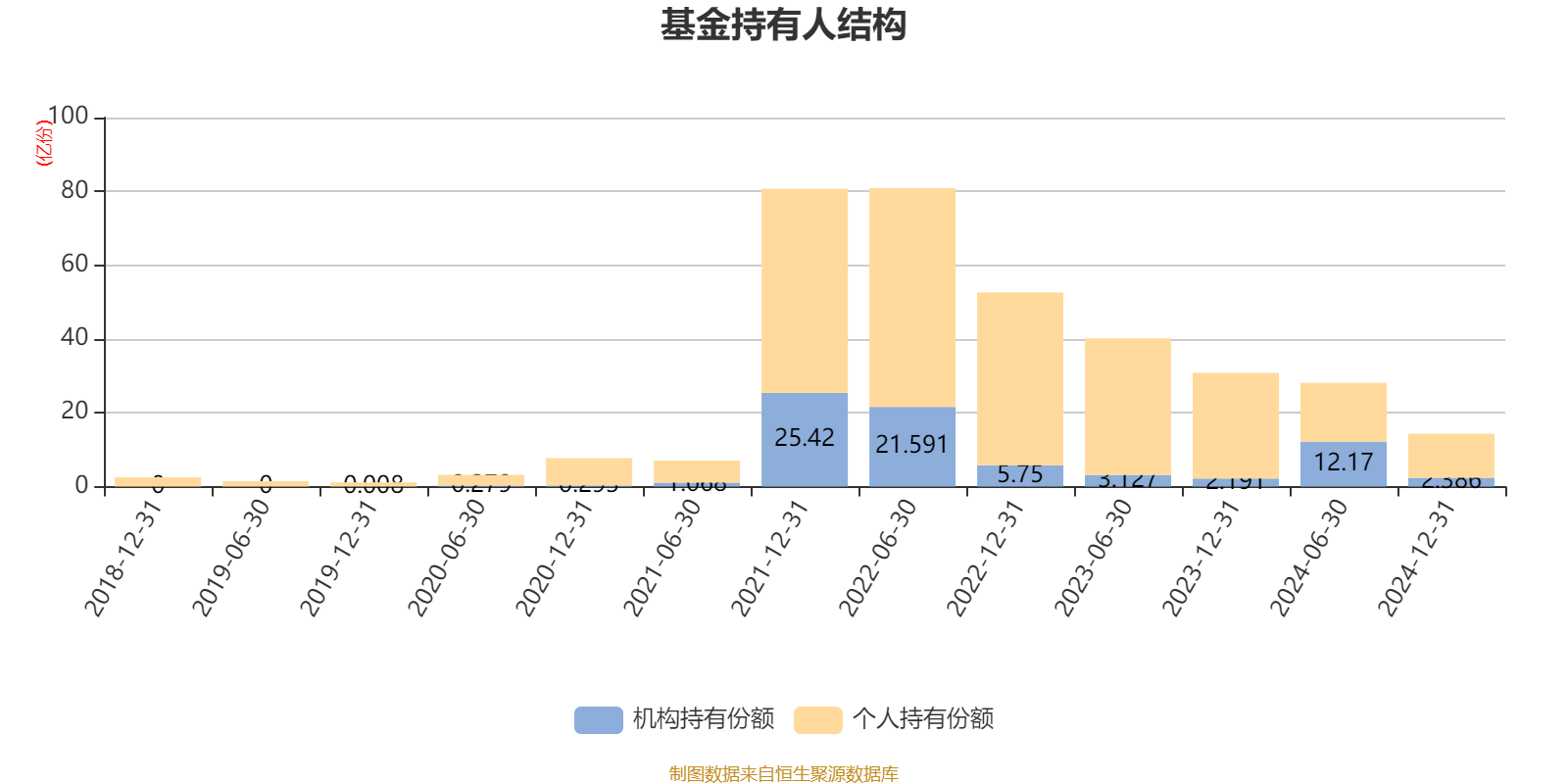 截至2024年12月31日,基金持有人共计41.62万户,合计持有14.32亿份。其中管理人员工持有205.79万份,占比0.14%,机构持有份额占比16.66%,个人投资者占比83.34%。