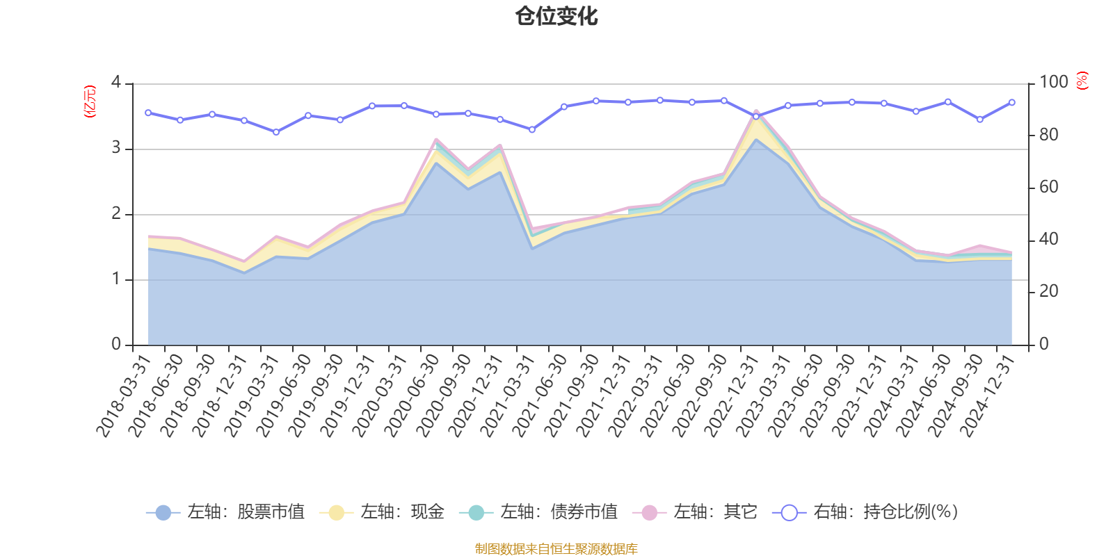据定期报告数据统计,近三年平均股票仓位为91.46%,同类平均为88.12%。2022年一季度末基金达到93.57%的最高仓位,2019年一季度末最低,为81.4%。