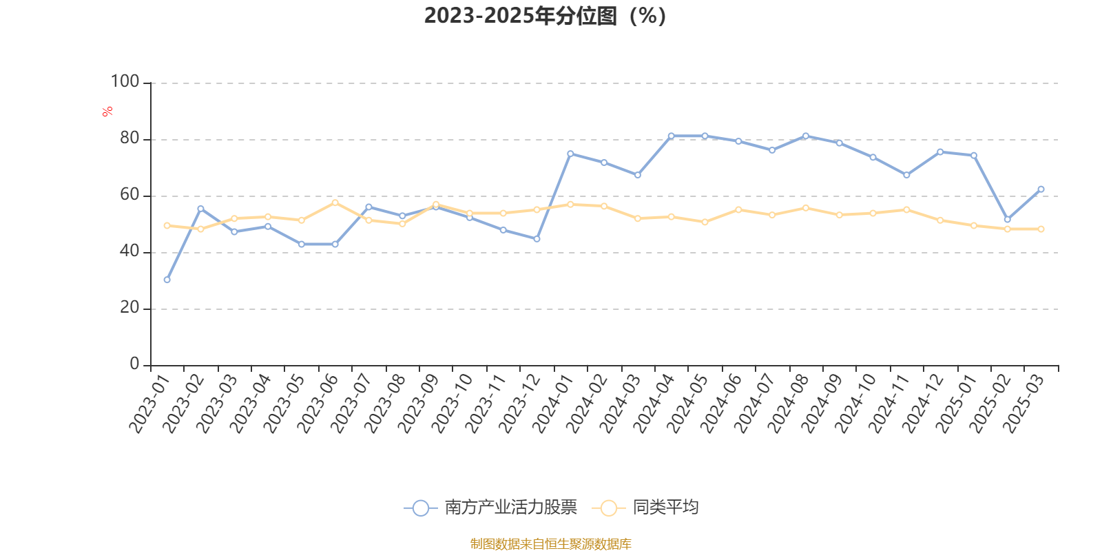 通过所选区间该基金净值增长率分位图,可以观察该基金与同类基金业绩比较情况。图为坐标原点到区间内某时点的净值增长率在同类基金中的分位数。