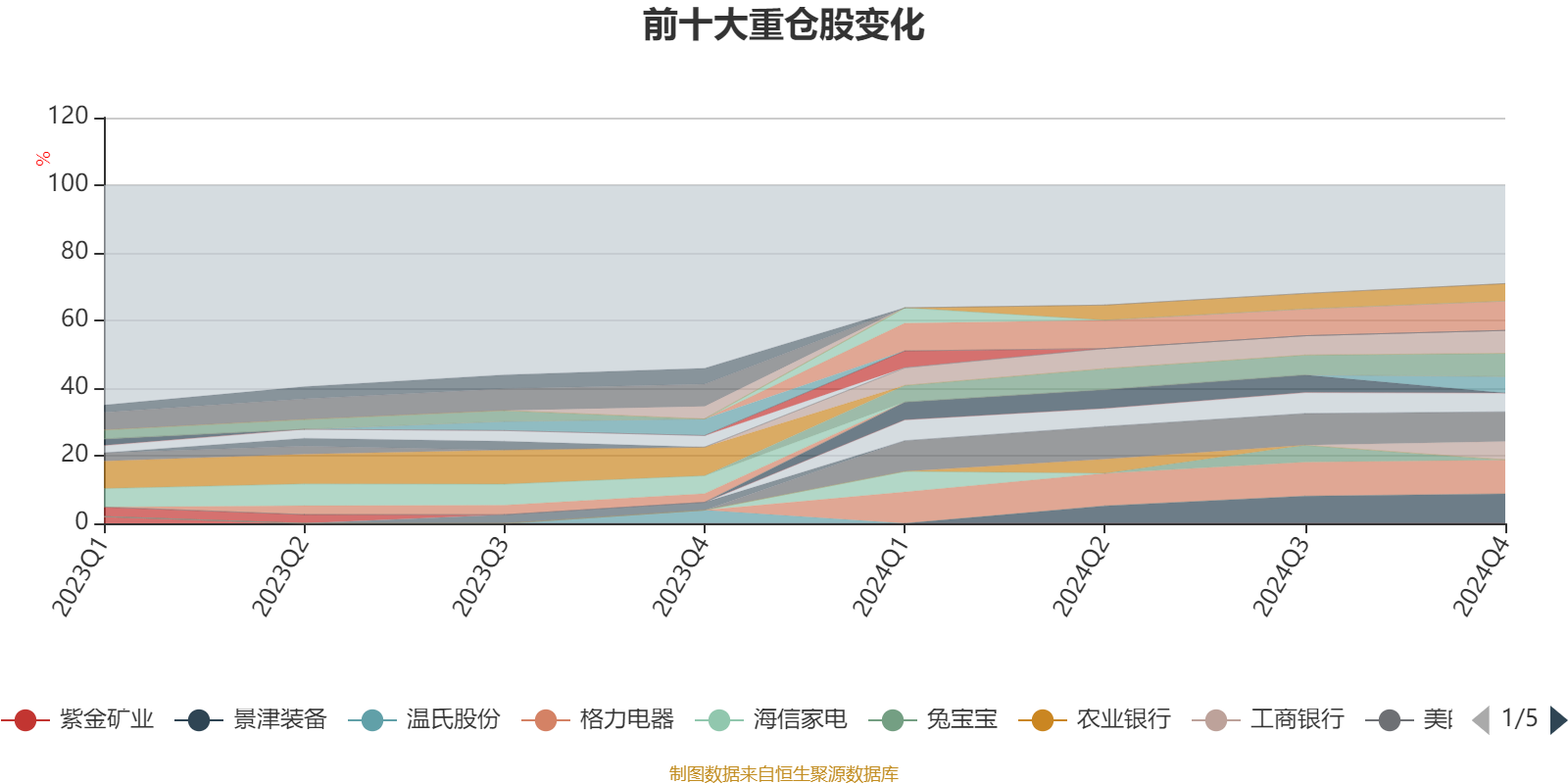 截至2024年末,基金十大重仓股分别是格力电器、美的集团、景津装备、凌霄泵业、渝农商行、招商银行、春风动力、工商银行、济川药业、天地科技。
