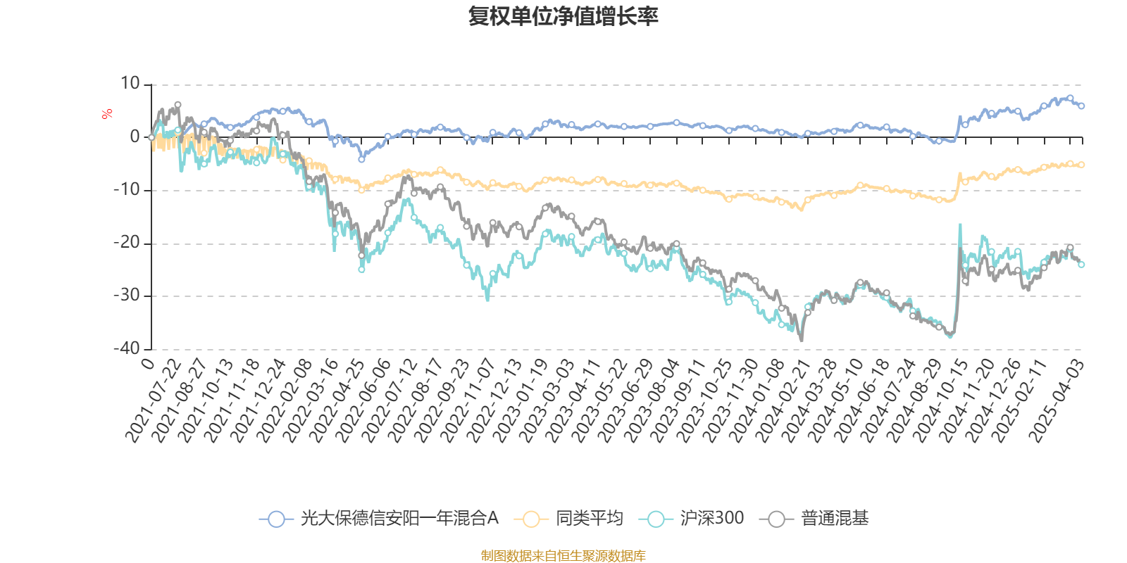 截至4月3日,光大保德信安阳一年混合A近三个月复权单位净值增长率为2.44%,位于同类可比基金122/670;近半年复权单位净值增长率为3.01%,位于同类可比基金169/670;近一年复权单位净值增长率为4.31%,位于同类可比基金366/667;近三年复权单位净值增长率为6.08%,位于同类可比基金250/559。