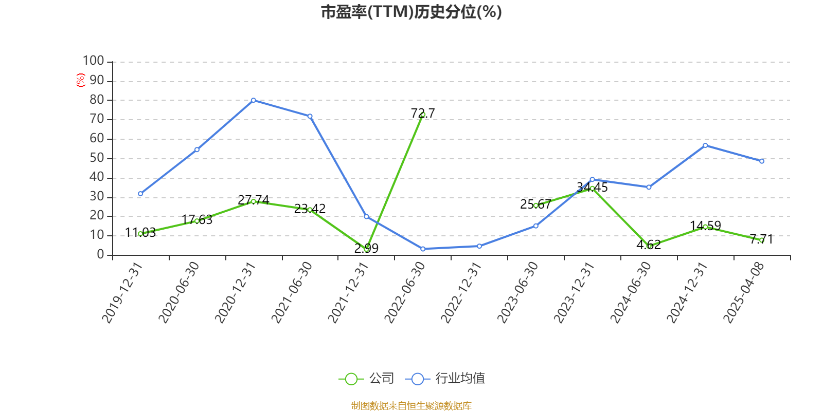 市盈率、市净率为负时,不显示当期分位数,会导致折线图中断。