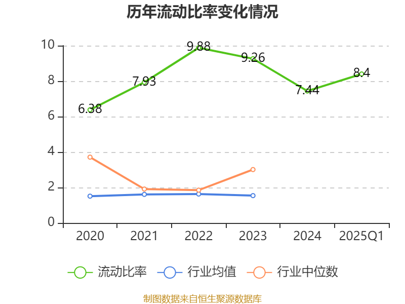 2025年第一季度,公司流动比率为8.4,速动比率为7.99。