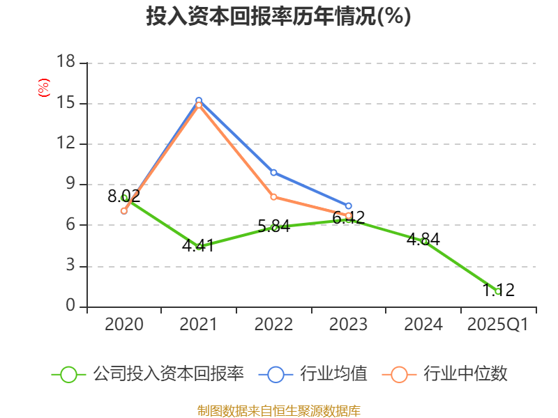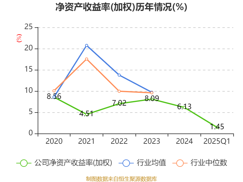 盈利能力方面, 2025年一季度公司加权平均净资产收益率为1.45%,同比上升0.78个百分点。公司2025年第一季度投入资本回报率为1.12%,较上年同期上升0.71个百分点。