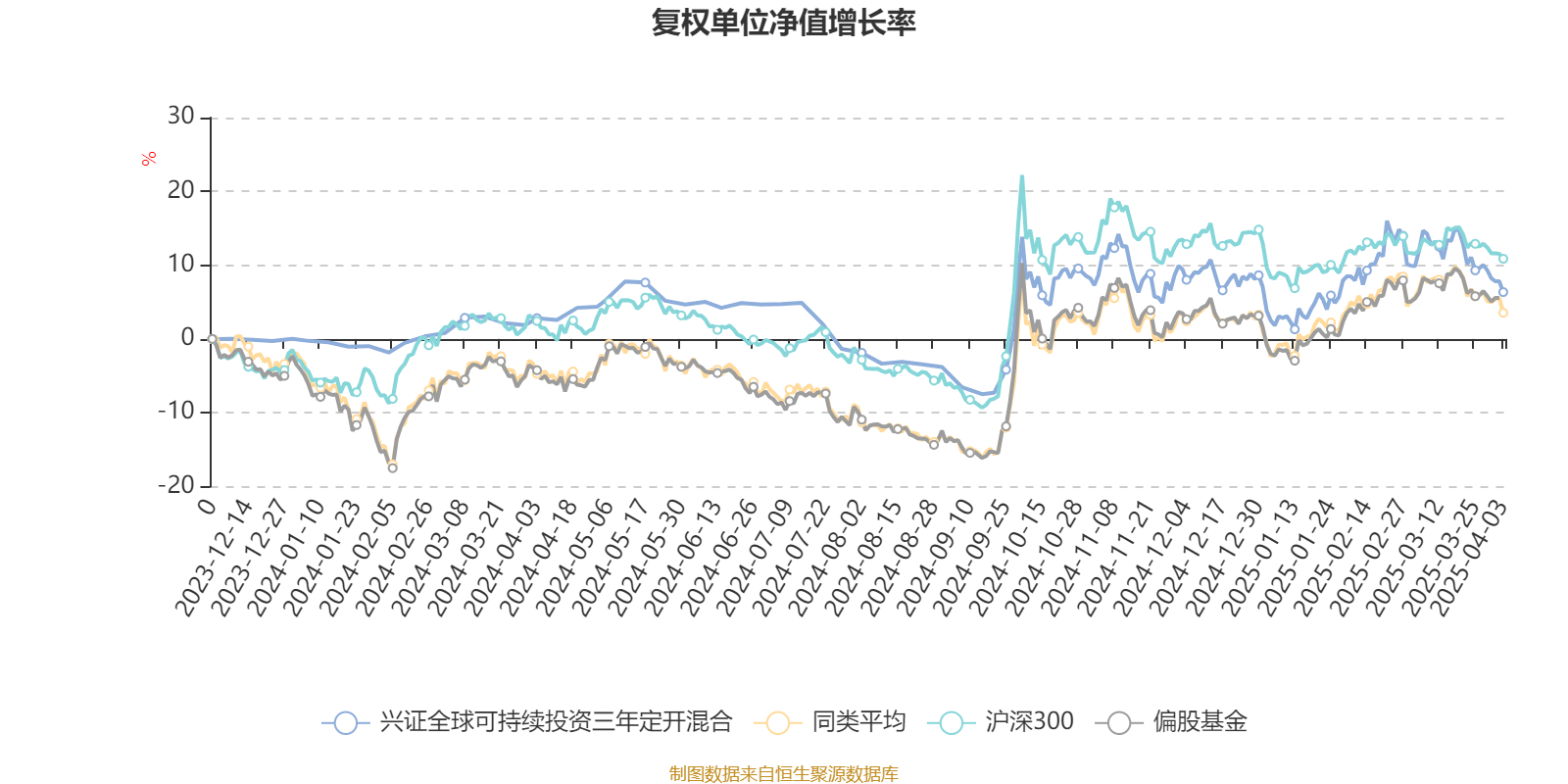 截至4月3日,兴证全球可持续投资三年定开混合近三个月复权单位净值增长率为3.74%,位于同类可比基金455/646;近半年复权单位净值增长率为-2.15%,位于同类可比基金432/646;近一年复权单位净值增长率为3.43%,位于同类可比基金456/639。