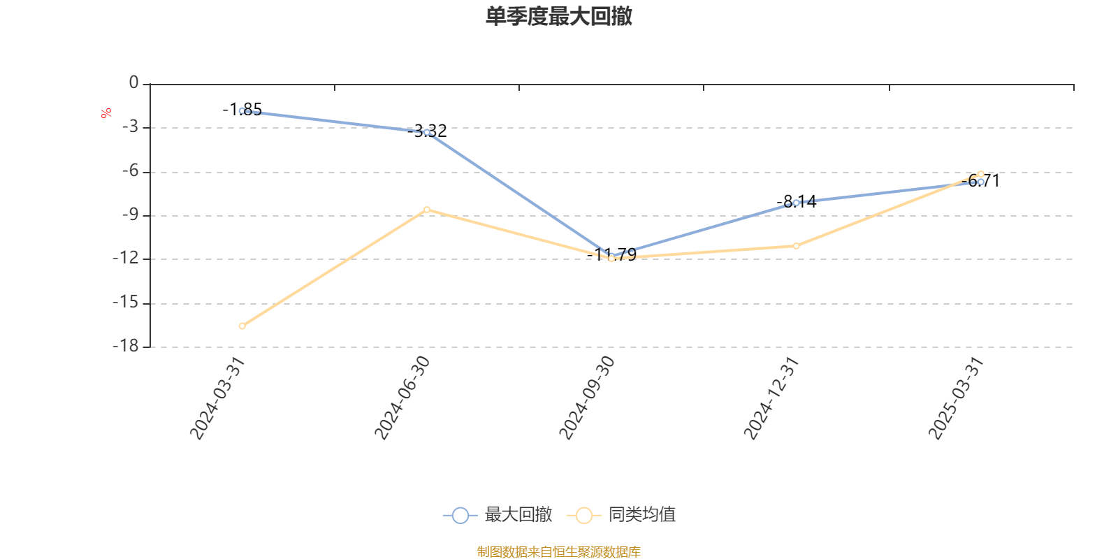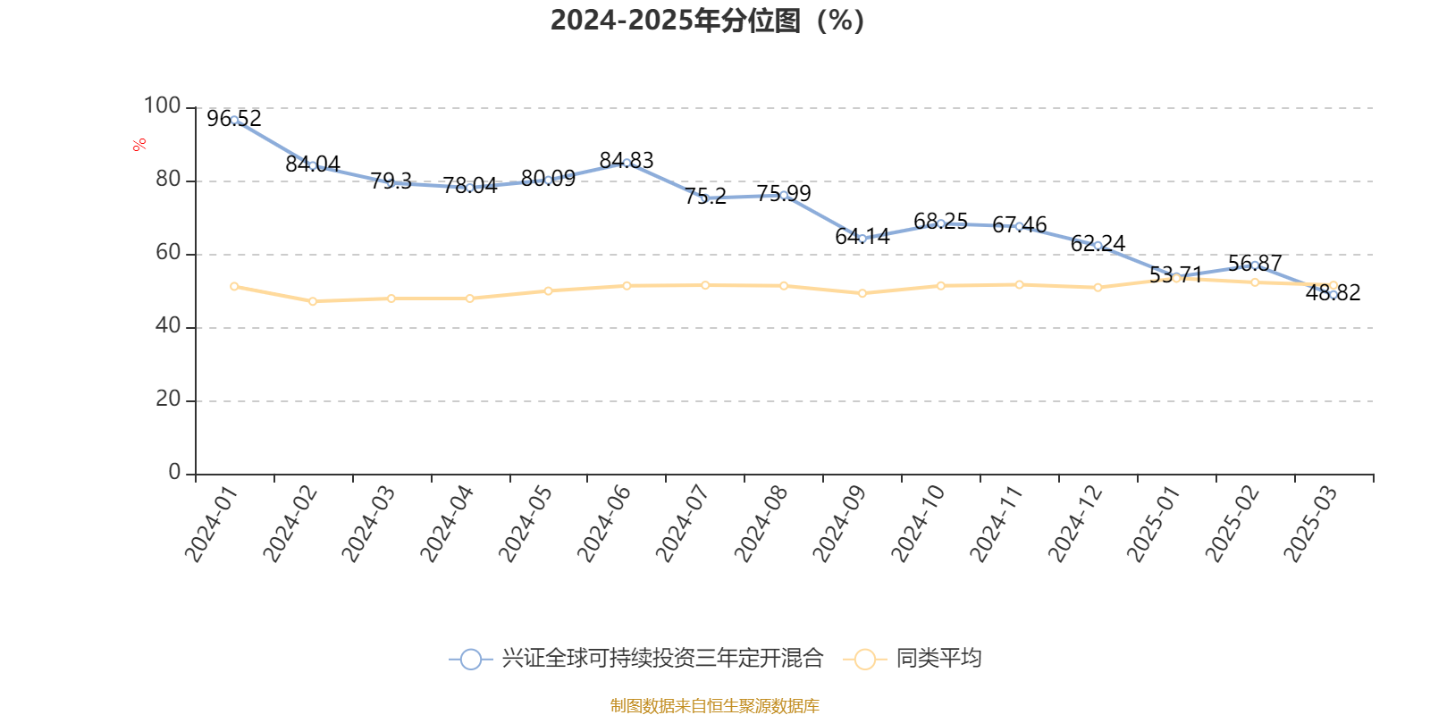 通过所选区间该基金净值增长率分位图,可以观察该基金与同类基金业绩比较情况。图为坐标原点到区间内某时点的净值增长率在同类基金中的分位数。