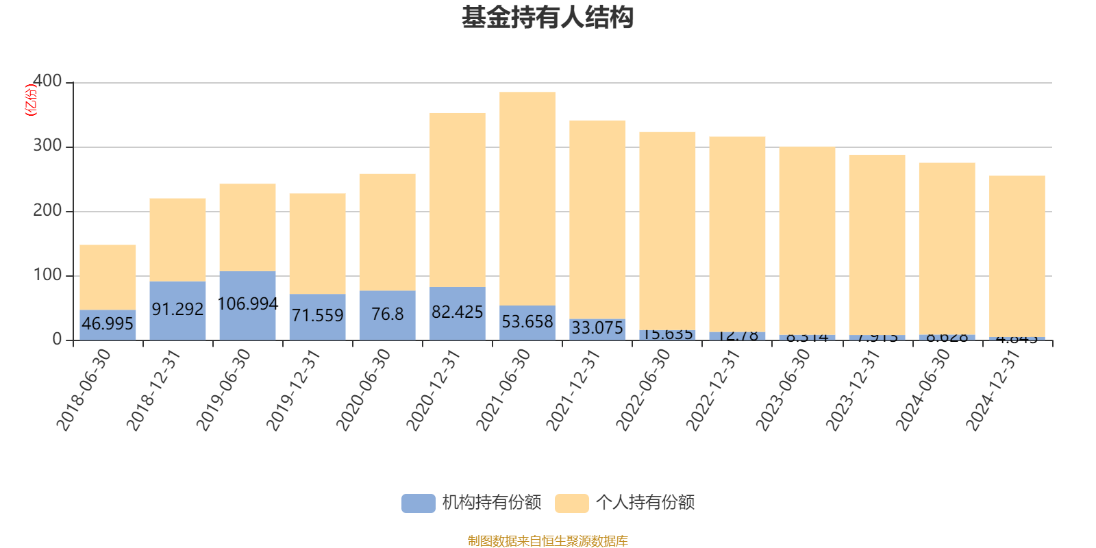 截至2024年12月31日,基金持有人共计130.11万户,合计持有254.97亿份。其中管理人员工持有286.12万份,占比0.01%,机构持有份额占比1.90%,个人投资者占比98.10%。
