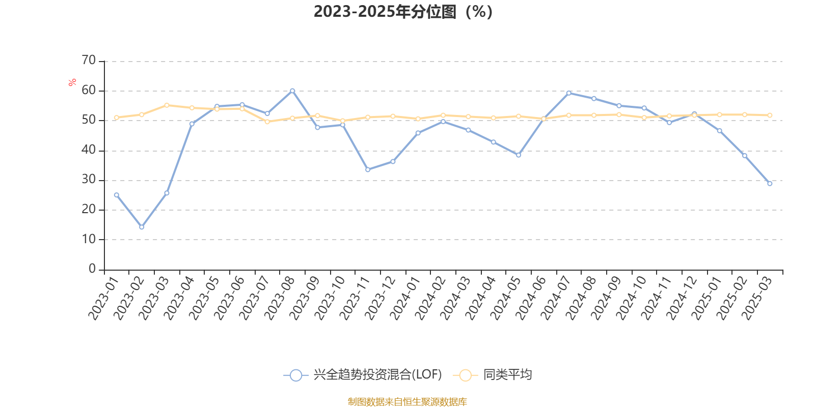 通过所选区间该基金净值增长率分位图,可以观察该基金与同类基金业绩比较情况。图为坐标原点到区间内某时点的净值增长率在同类基金中的分位数。