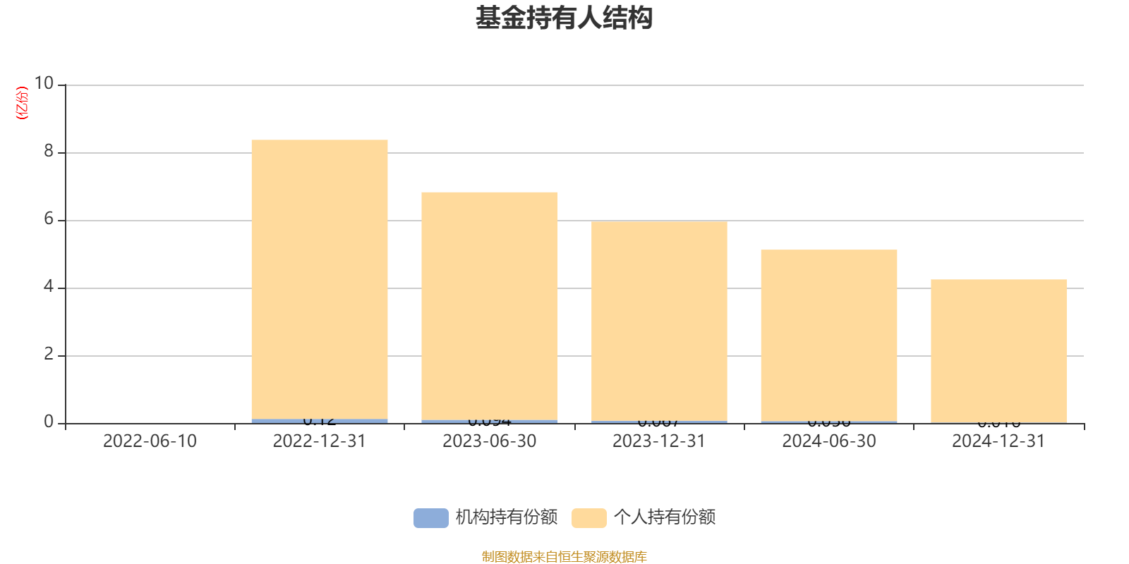 截至2024年12月31日,基金持有人共计4240户,合计持有4.24亿份。其中管理人员工持有66.38万份,占比0.16%,机构持有份额占比0.39%,个人投资者占比99.61%。